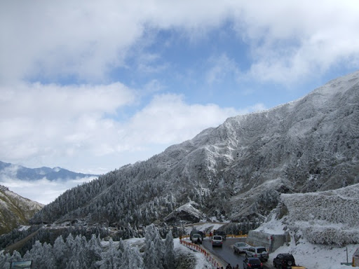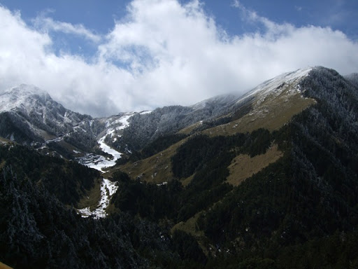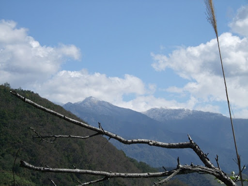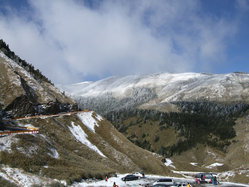 一路騎來都認為太陽很大氣溫很高武嶺應該沒問題的我們,在要進入台14甲時,看到了遠遠的山白了頭,又不禁擔心起來。