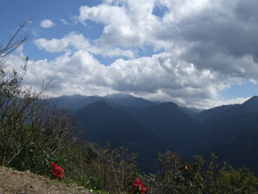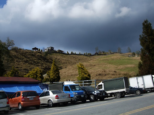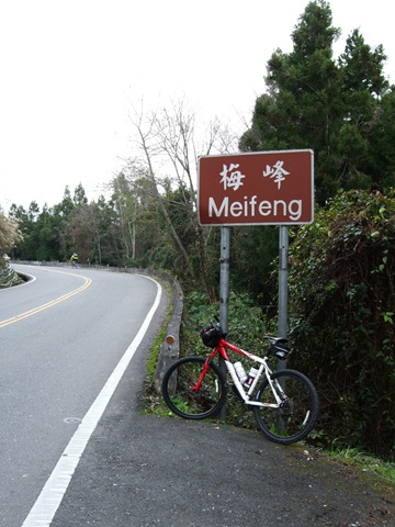 剛過清境到青青草原這段也是陡的不像話,由其在清境農場牌樓處更是只能陡到站起來抽車,前後大約有2公里的陡坡。不過大部份的時間下車休息都不是心跳太快,喘不過氣或大腿不行,絕大多數的時候都是因為屁股非常的痛,鐵屁股不愧是鐵屁股。雖然有穿車褲,但是背上背了一個約7公斤的背包,重量全壓在屁股上,加上陡坡讓我連抽車都很辛苦。這一路天氣都很好,有太陽的時候很溫暖,被雲遮著就會漸漸感受到寒意,就在這段路上我把屁股稍唯往一邊靠,讓重量壓在單側的臀大肌上,然後每20轉換邊。這個方法讓我的屁股獲得不少休息,可以待在車上的時間變長很多。過松崗後有一小段的下滑到達梅峰農場的入口,這裡也是台大農學院的實驗農場,我們三個在這裡換長指手套,加防寒衣和雨衣。