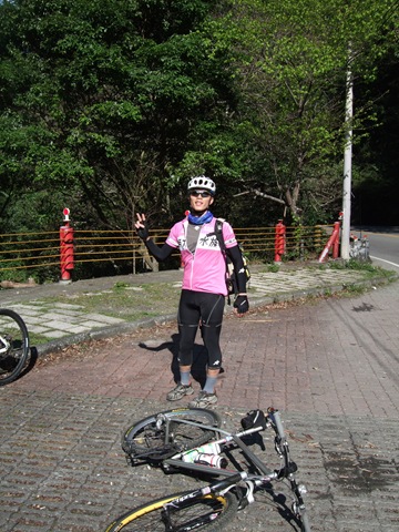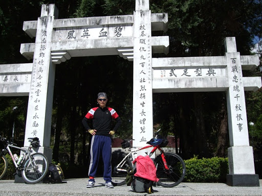 第二天早上在住宿點(松園)吃了很多的早餐之後,8點20分我們開始朝今天的目標-武嶺前進。埔里的溫度很高,太陽也不小,這讓我們對於能安然上到武嶺這個想法有很大的信心。從人止關開始就開始上坡,為了保持體力大家都慢慢的騎,由前年的經驗知道,坡會在到霧社之的連續髮夾彎前最陡,大約在10點35分到達了莫那魯道紀念碑。太陽非常的大,我把排汗衣和車衣放在地上曬,不久後bypeng也到了,我們就到霧社的7-11補給。